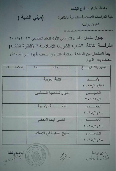 جداول الإمتحانات التحريرية لشعبة اللغة صفحة خدمية لطالبات كلية الدراسات الإسلامية والعربية للبنات بالزقازيق Facebook