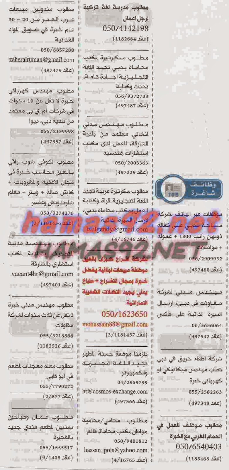 وظائف شاغرة من جريدة الخليج 11 ابريل 2015 صدى وظائف الإمارات