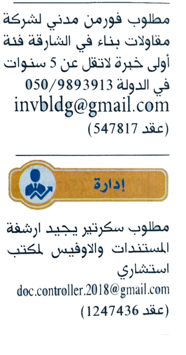 وظائف جريدة الخليج الامارات اليوم 24 1 2018
