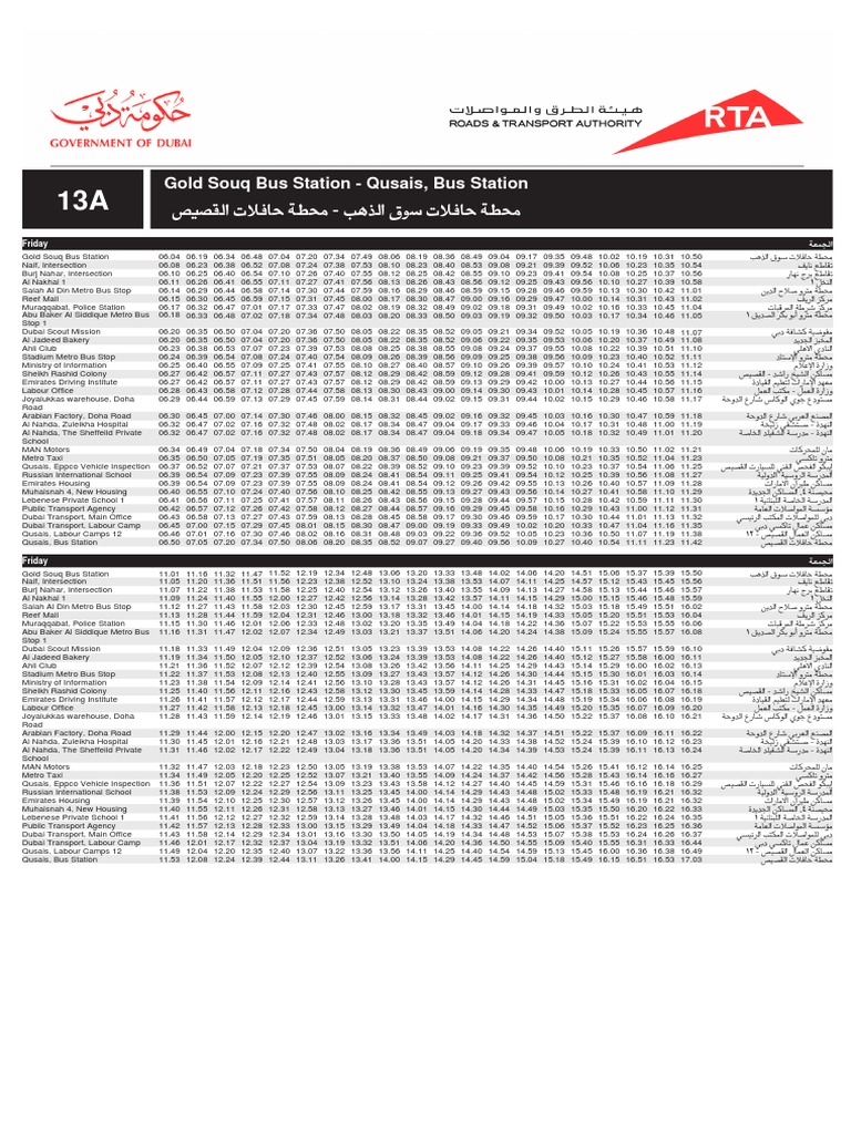 13a Gold Souq Bus Station To Al Qusais Bus Station Dubai Bus Service Timetable Dubai Doha