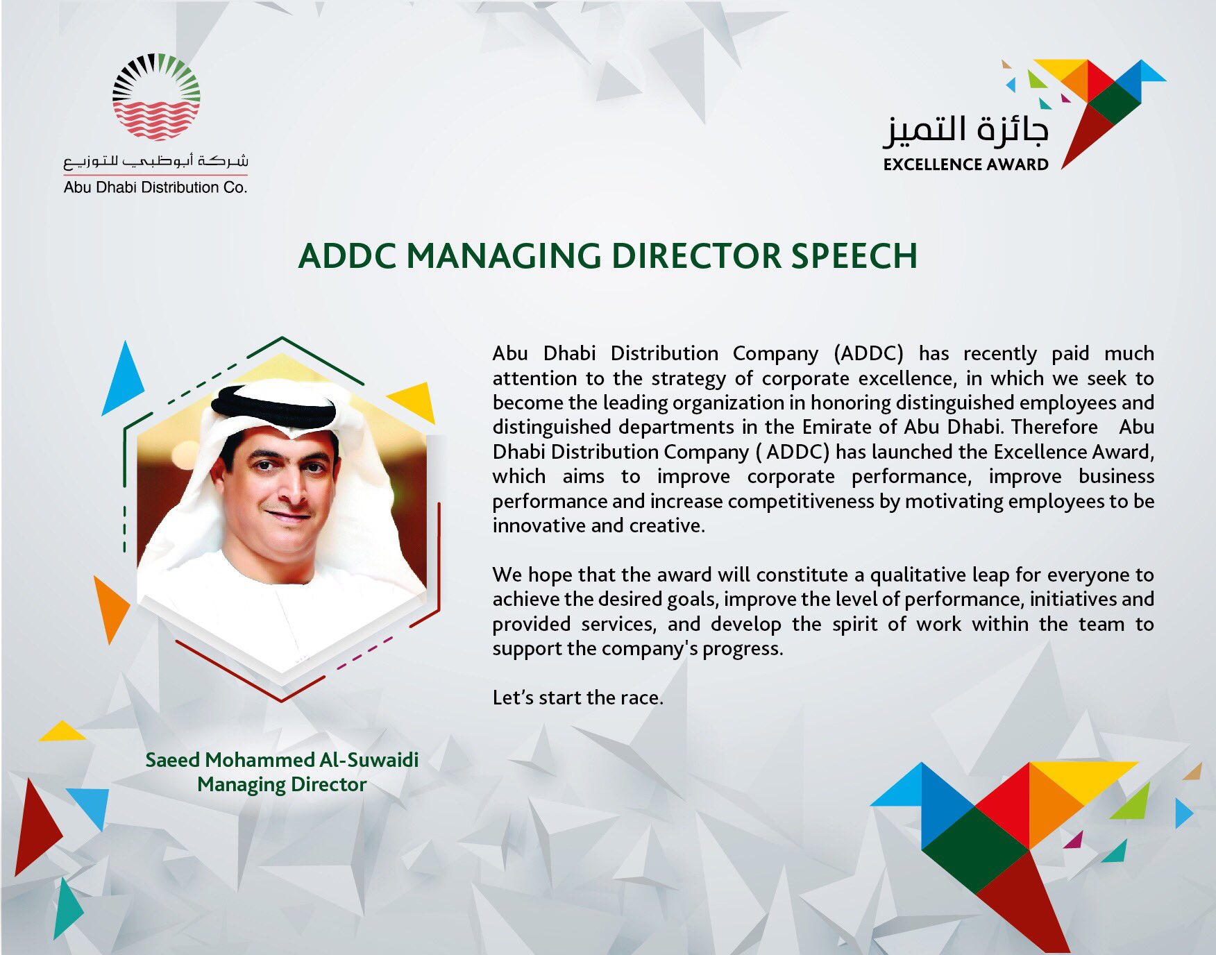 شركة أبوظبي للتوزيع On Twitter Speech By His Excellence Mr Saeed Mohammed Al Suwaidi The Managing Director Of Abu Dhabi Distribution Company About Excellence Award Addc Abudhabi Uae Https T Co U8qec0v2zm