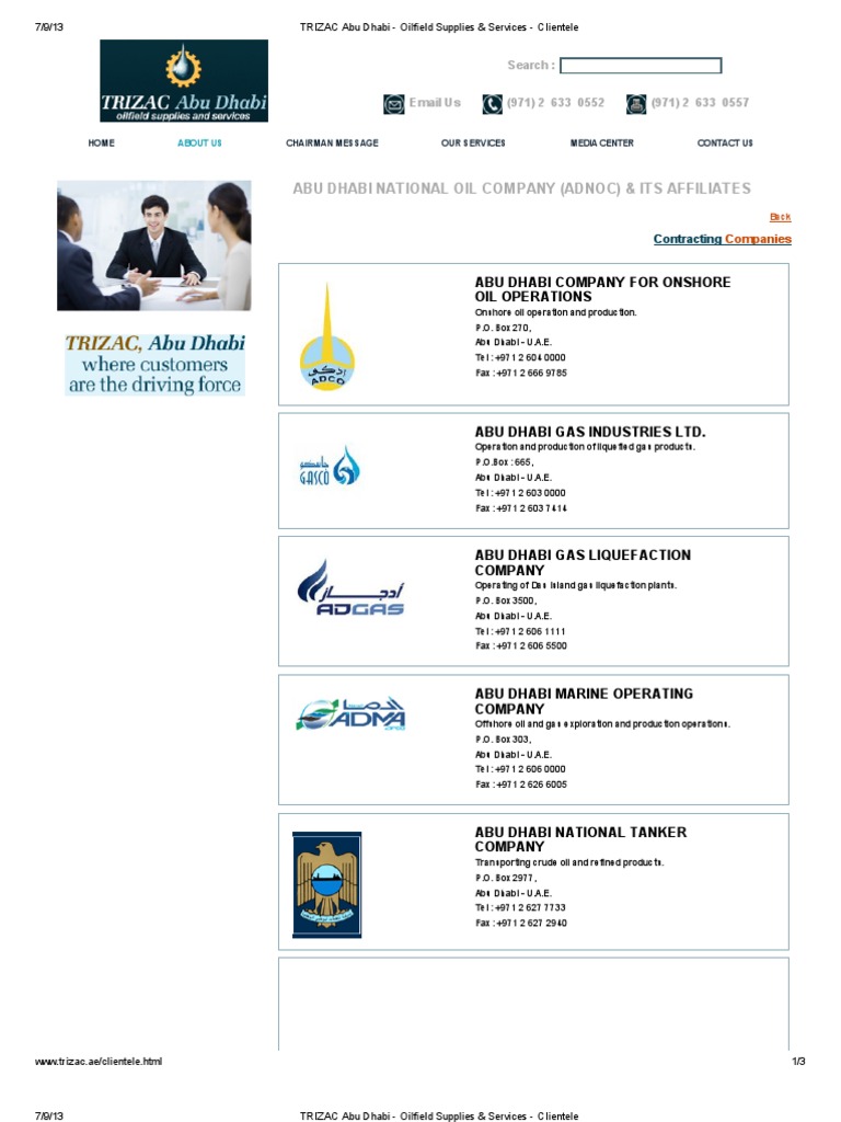 Trizac Abu Dhabi Oilfield Supplies Services Clientele Hydrocarbons Chemical Substances