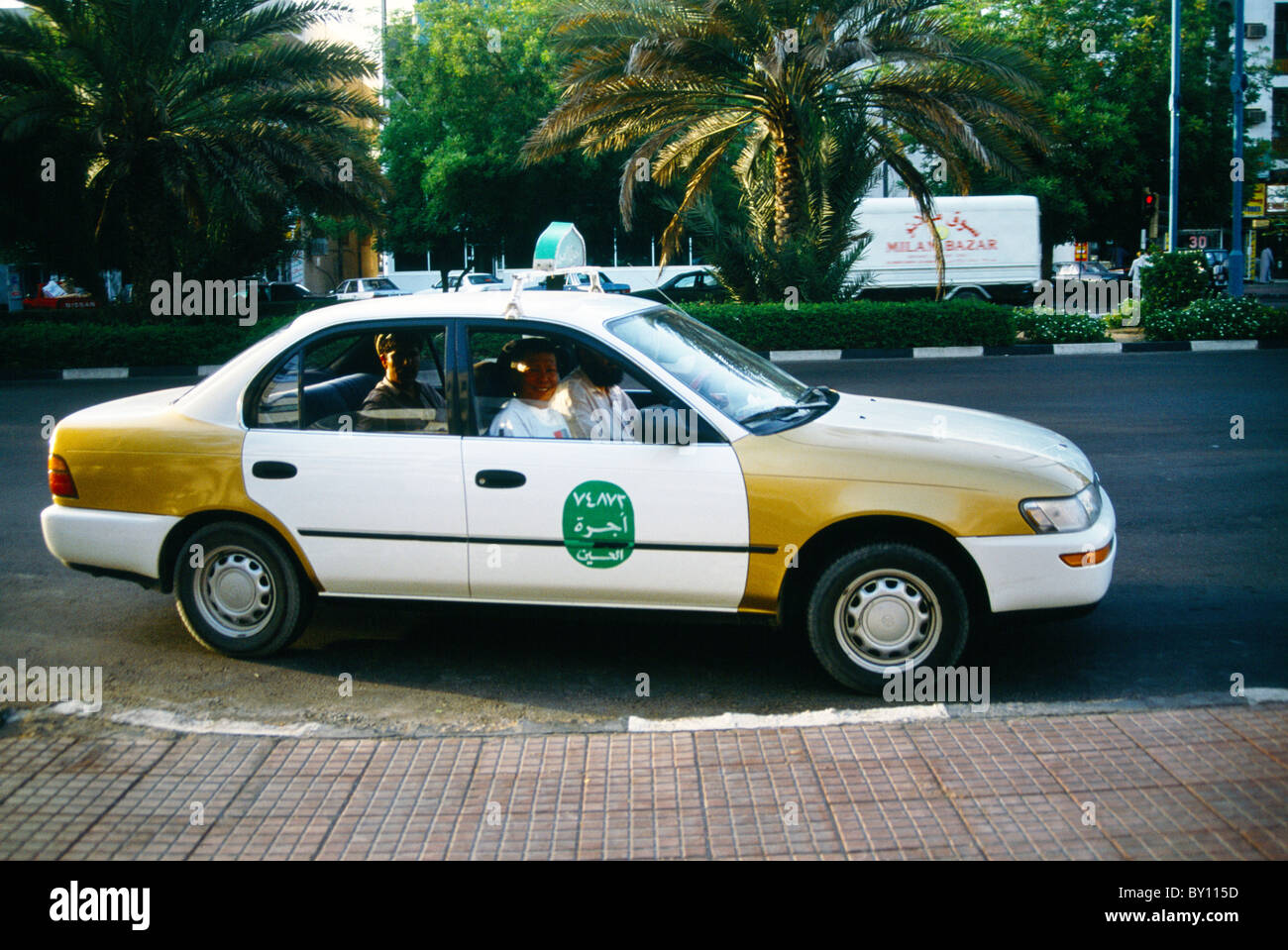 Abu Dhabi Uae Al Ain Taxi In Street Stock Photo Alamy