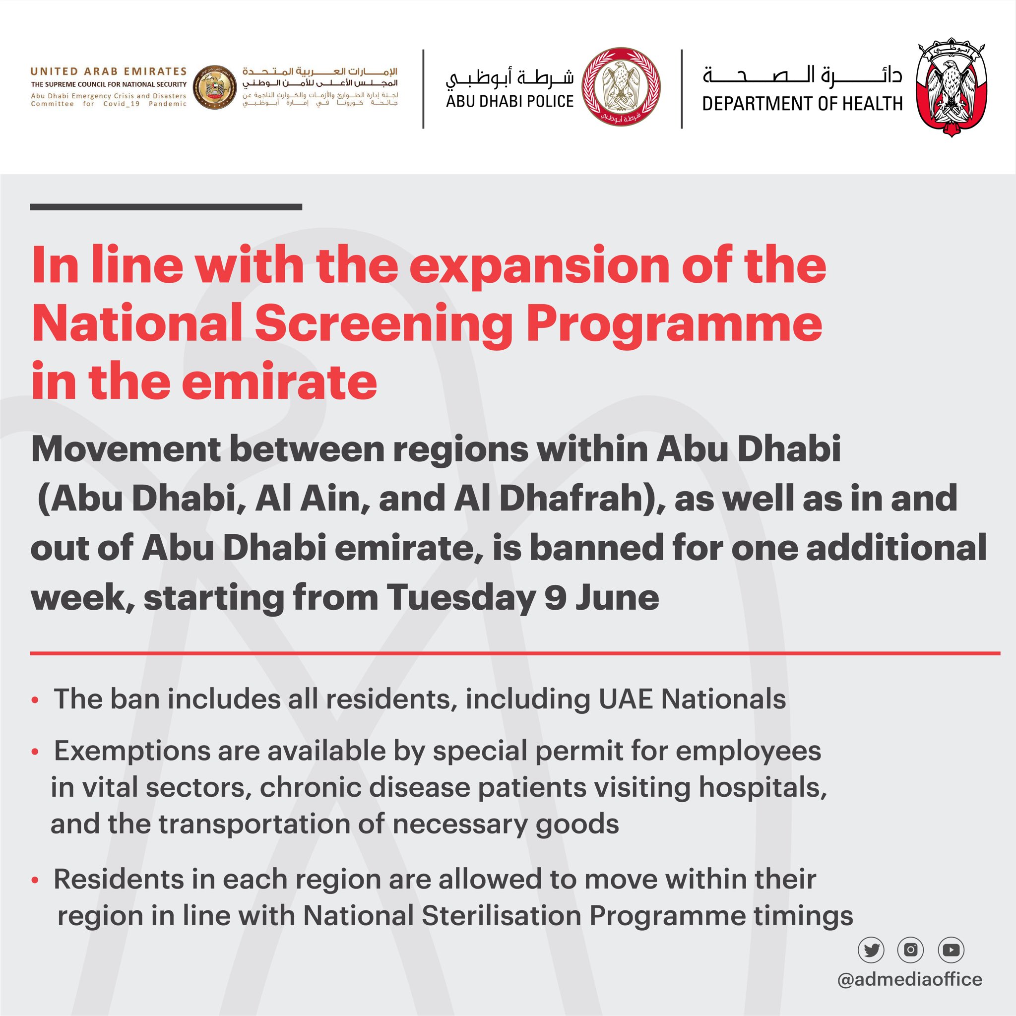 مكتب أبوظبي الإعلامي On Twitter Abu Dhabi Emergency Crisis And Disaster Committee For The Covid 19 Pandemic In Collaboration With Adpolicehq And Dohsocial Have Announced That The Abu Dhabi Movement Ban Is To