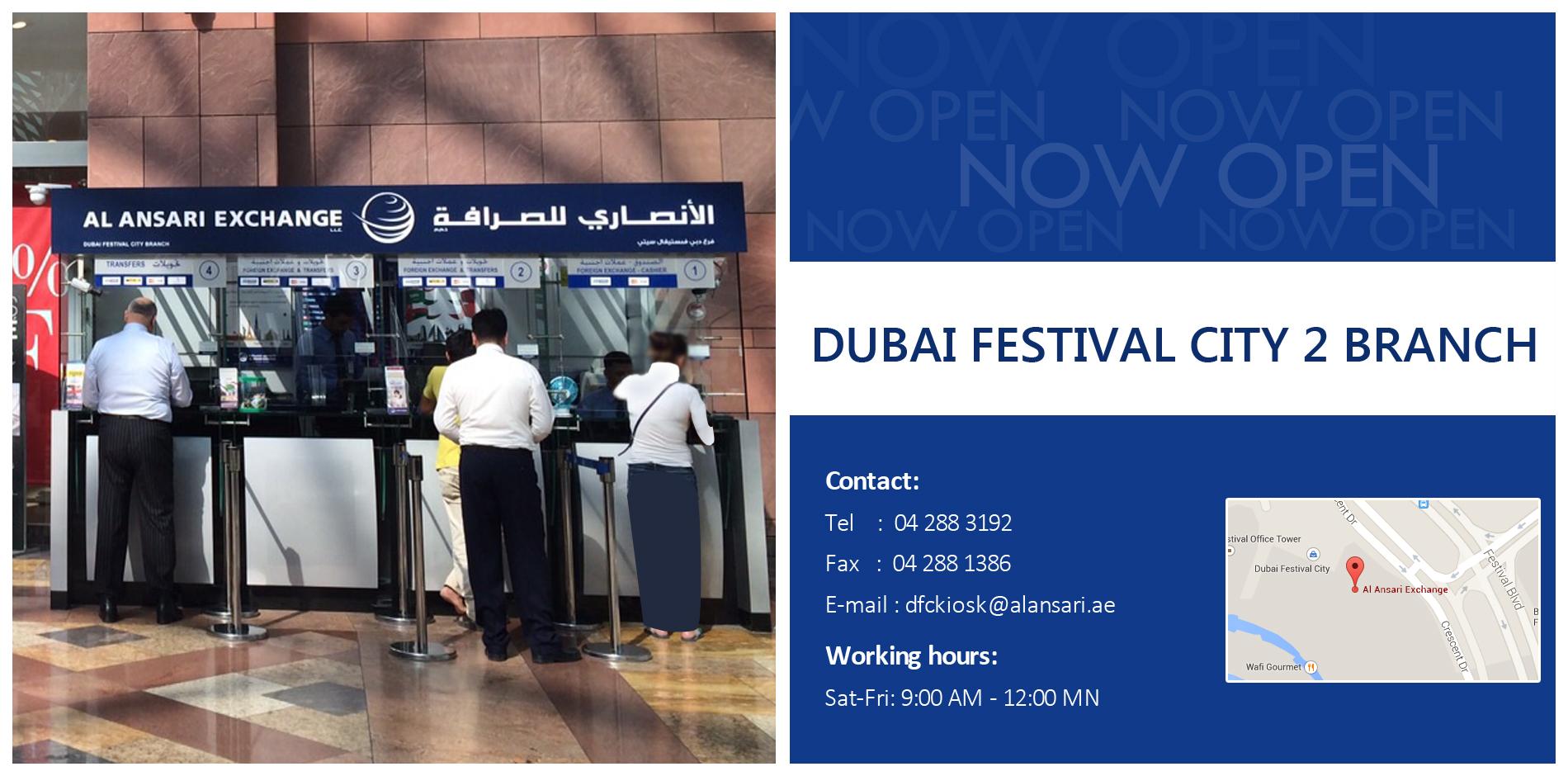Al ansari exchange dubai festival city. Al ansari exchange ground floor dubai festival centre crescent drive dubai festival city ras al khor near gloria jean s coffees dubai near gloria jean s coffees branches. Al ansari exchange is a leading money exchange in uae and has one of the largest branches network in the country. 40r cn 33936 90708.