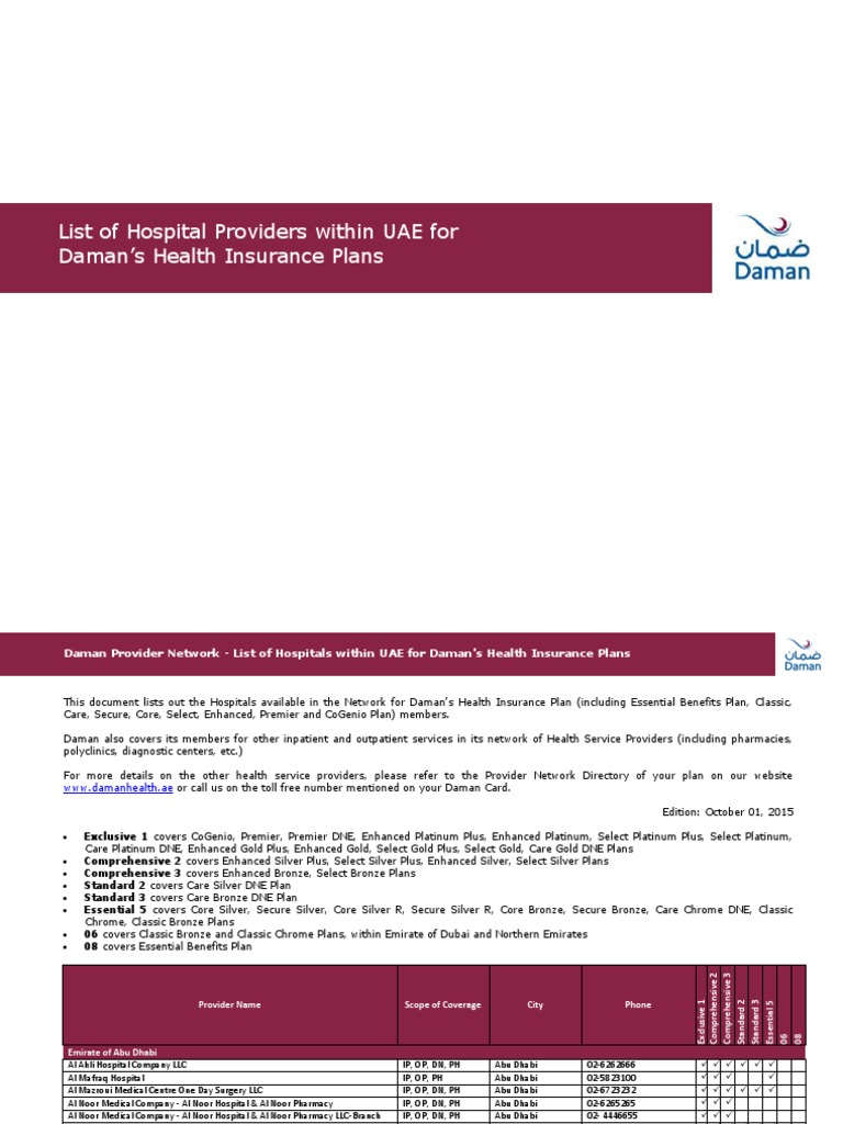 Network Providers Within Uae For Daman S Health Insurance Plans Pdf Free Download