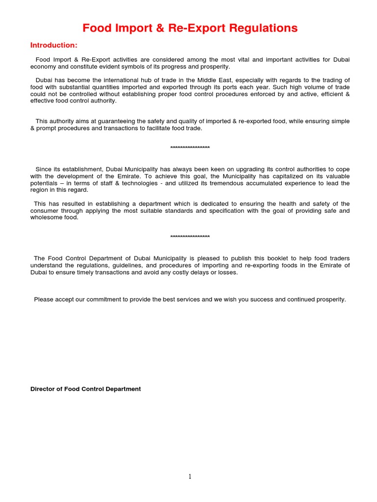 Uae Food Import Requirements Pdf Document