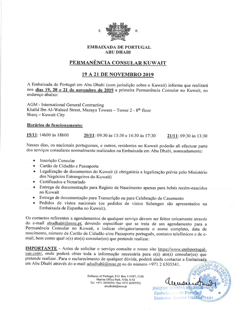 Permanencia Consular Kuwait 19 21 Novembro 2019