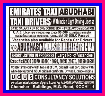 Jobs Open In Leading Emirates Taxi Company Abu Dhabi For Taxi Drivers Pay 1200 Dhs With Commission Test Interview Last Date 10 12 2014 Apply Now Adspk Pk Very Helpful For Students And Jobless People