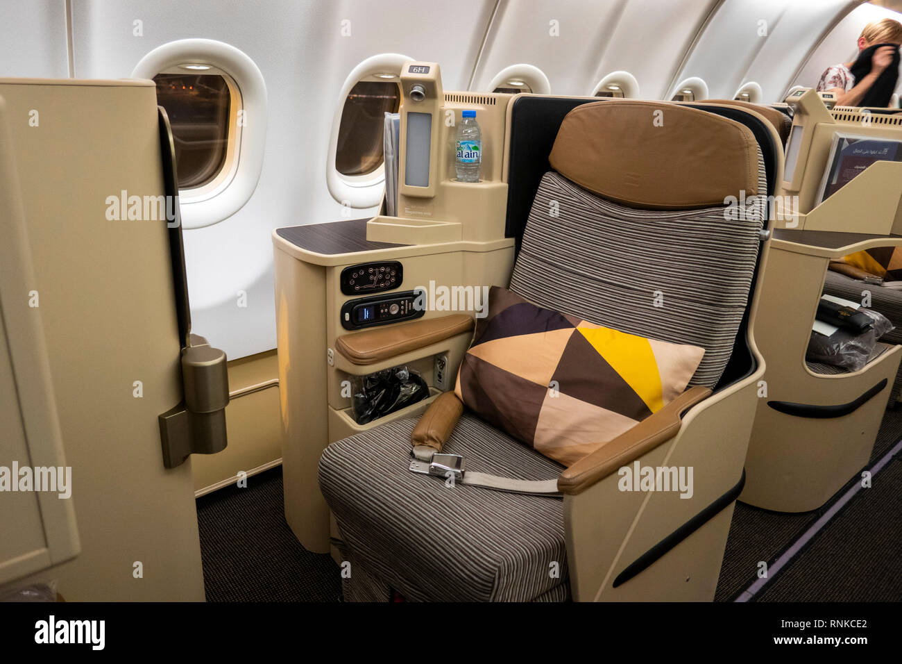 Air Travel Etihad Airways Boeing 777 300 Business Class Cabin Seat For Long Haul Flight Stock Photo Alamy