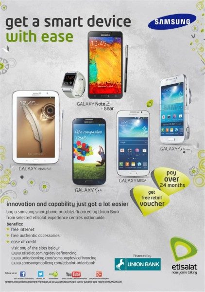 Samsung Mobile Etisalat Union Bank Launch New Flexible Payment Plans For Etisalat Samsung Devices Get A Smart Device With Ease Bellanaija