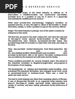 Hospitality Food Beverage Service