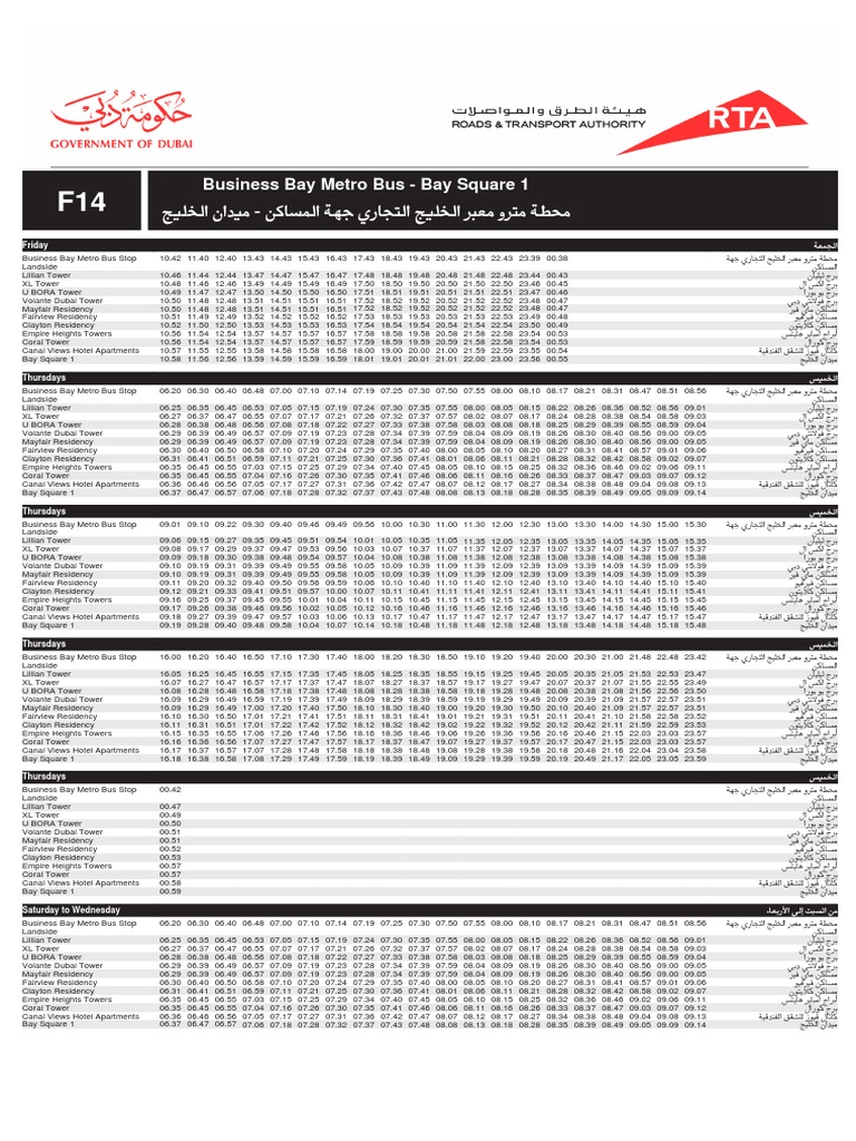 F14 Business Bay Metro Station To Business Square Dubai Bus Service Timetable Buildings And Structures Economics