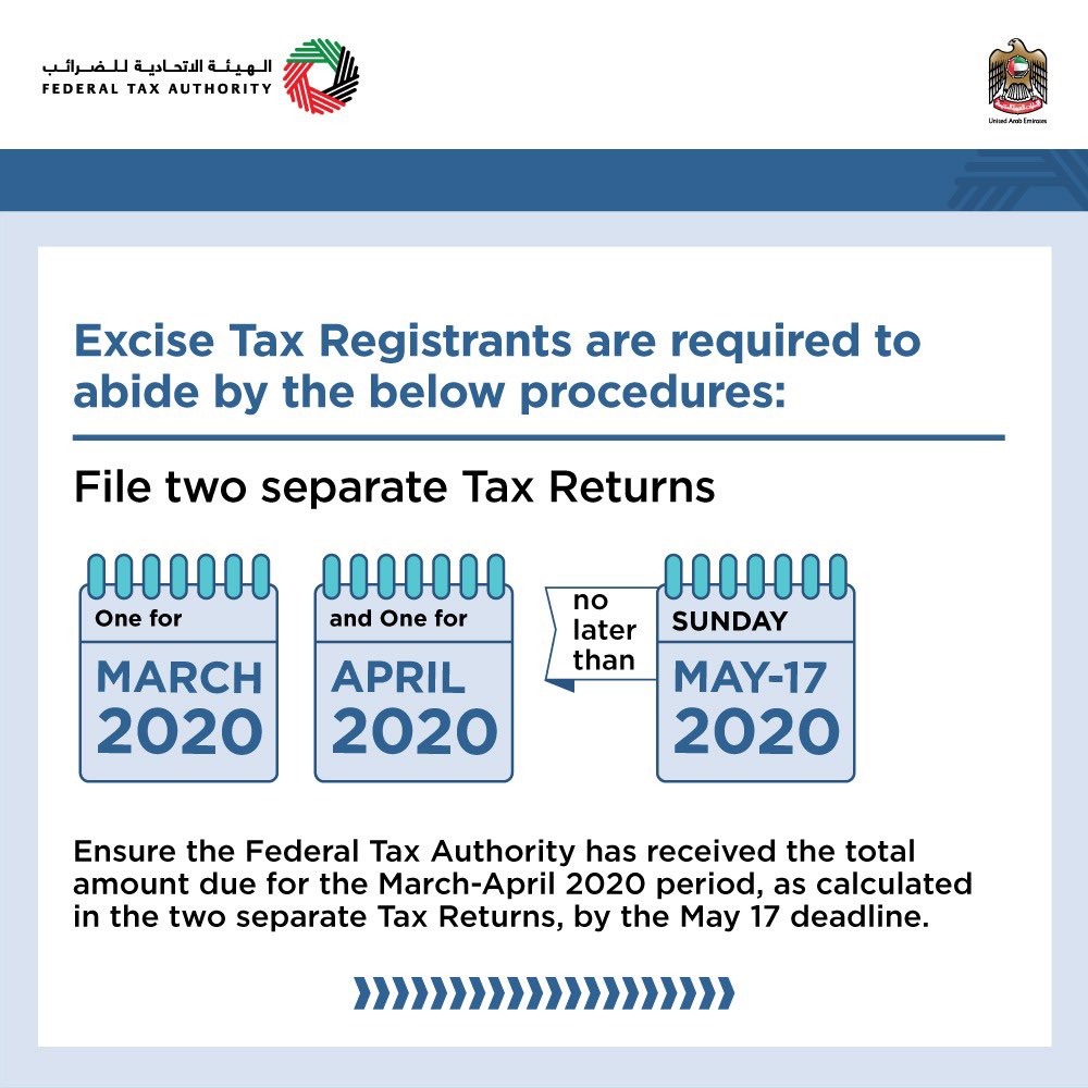 Federal Tax Authority On Twitter Federal Tax Authority Announces Exceptional Extension Of Tax Period For Excise Tax Registrants In Light Of The 24 Hour Movement Restriction In Some Areas Https T Co J731vwayej