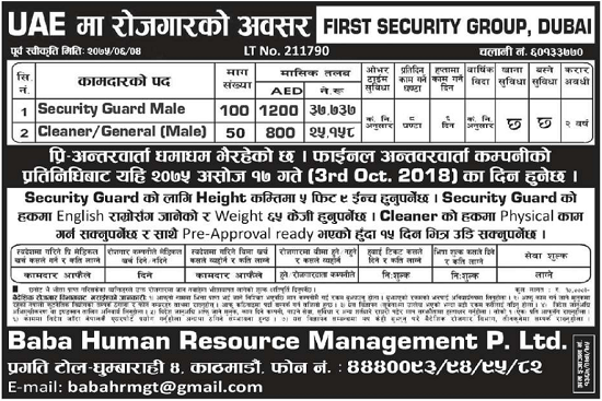 Job Demand From Uae Job Vacancy In First Security Group Llc Job Vacancy For Cleaner Job Finder In Nepal Nepali Job Finder Portal Finds Your Match