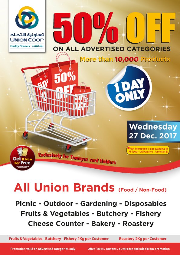 Union Coop On Twitter Exclusively For Tamayaz Cardholders 50 Off On More Than 10 000 Products Offer Valid For One Day Only Wednesday 27 Dec 2017 At All Union Coop Branches For Details
